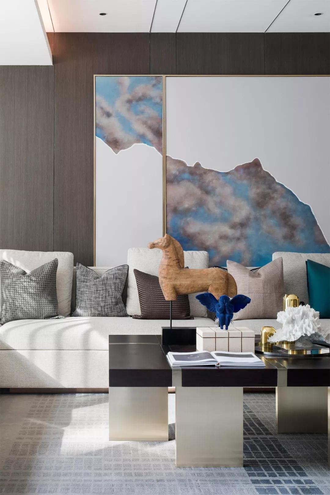 整体以暖灰色为主,经典蓝色抽象挂画与靠枕,让简洁沉稳的91视频成人APP下载免费瞬间多出一抹生活的韵律。