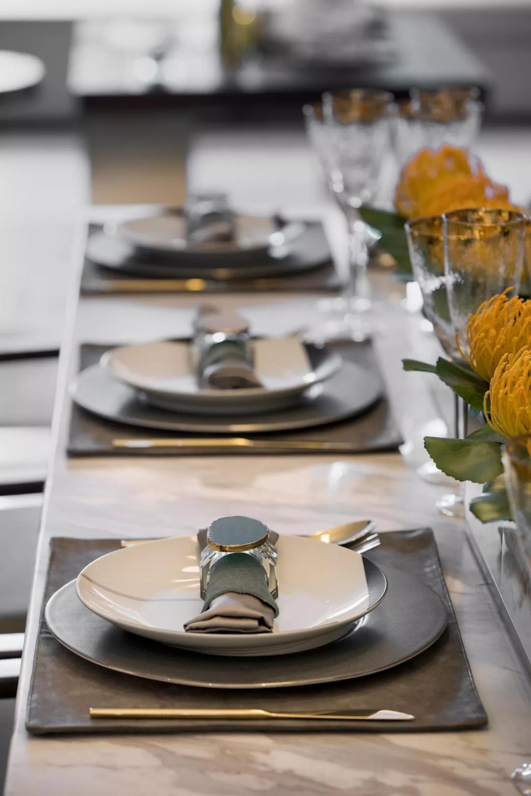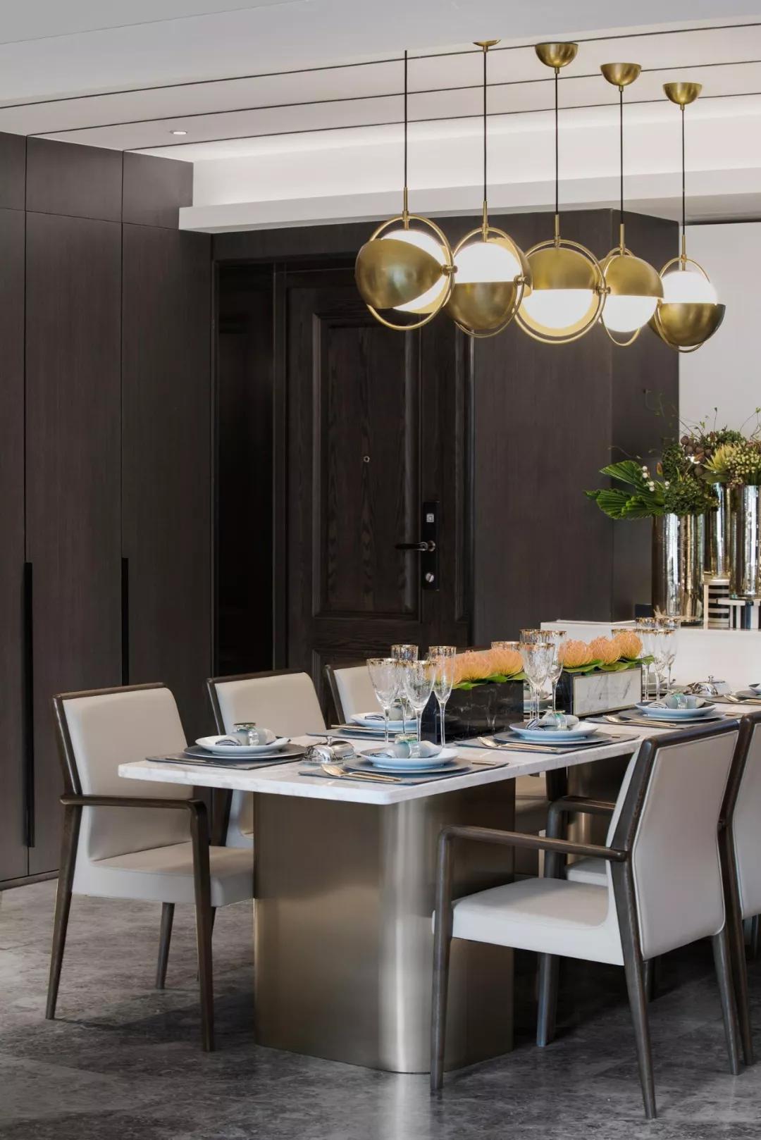 餐厅打破传统的陈设布局方式,餐桌的纵向性布局和吊灯装置阵列分布相呼应,饰品的摆放不再那么规整,看似随意的布局,增加91视频成人APP下载免费的自由度和个性。
