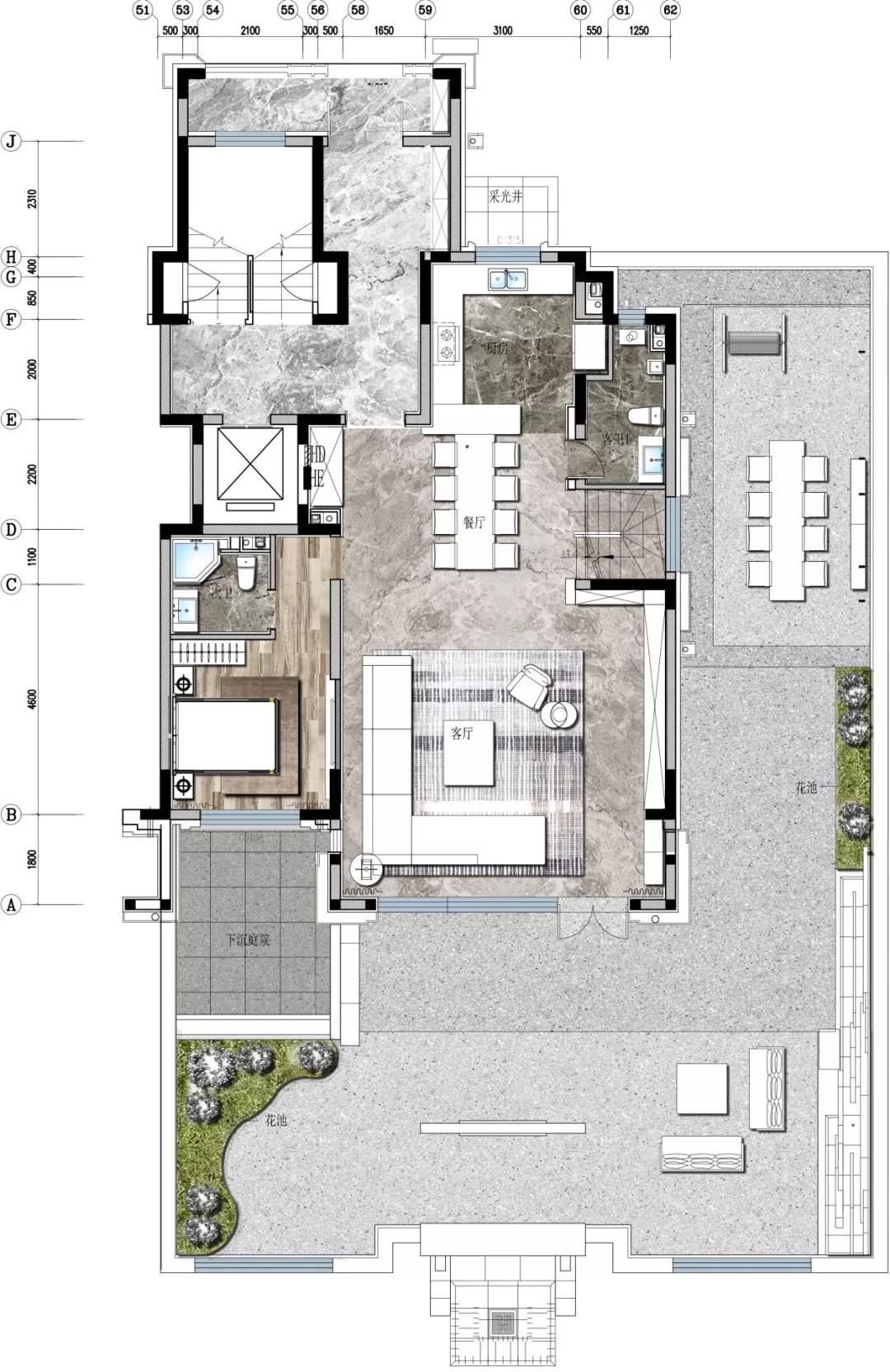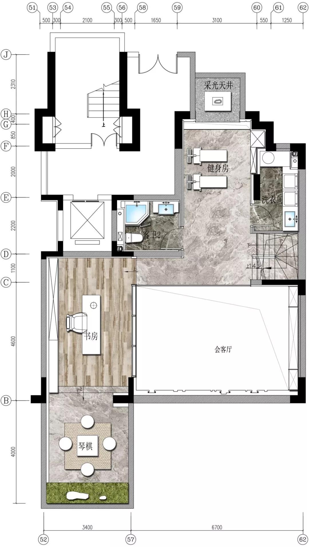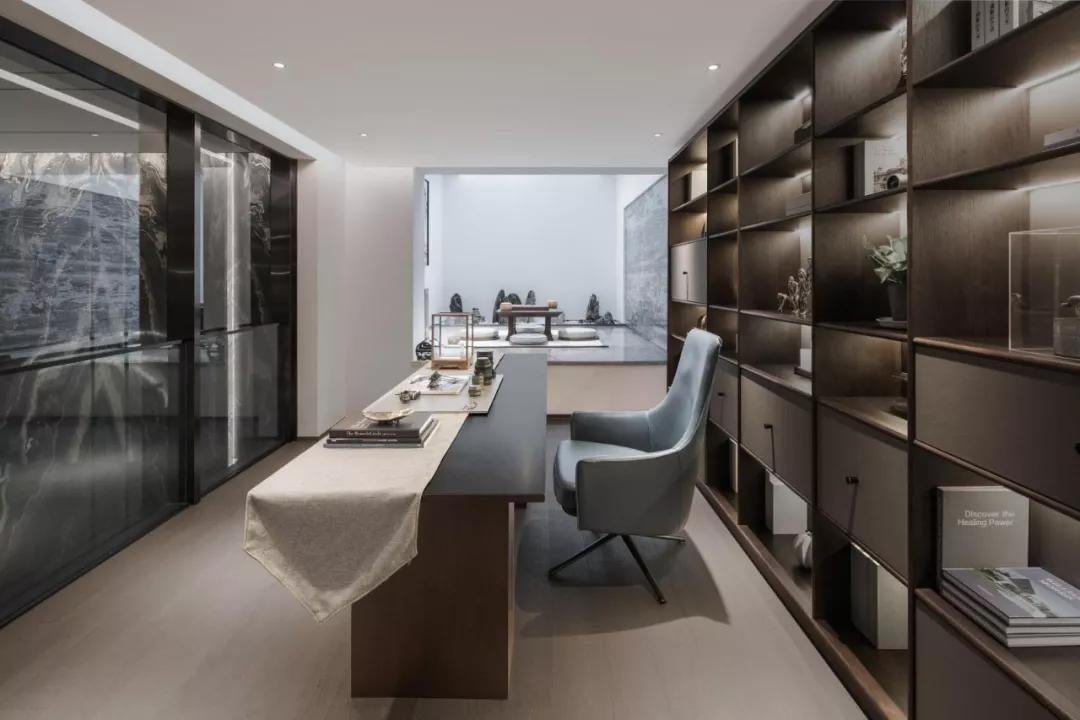 负一层围绕中空区域展开,书房、棋牌室与健身房各得其所,91视频免费大全延续“院”的概念把“景”影射其间,当两束光从不同斜度进入,洒向山水造景墙面上,“居室内而知四时”之感油然而生。