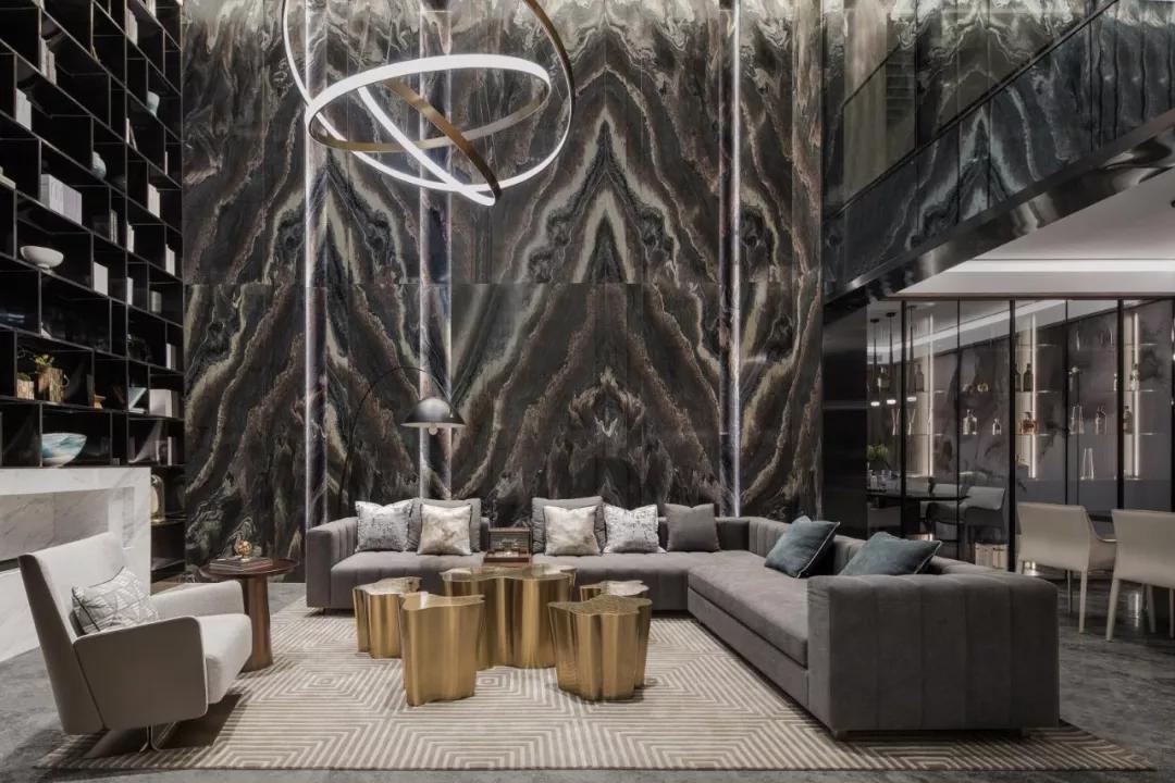负二层会客厅,大面积挑高地下91视频成人APP下载免费,被切割成不同的层次,暖棕色木质配以亮色黄铜的精致作为社交91视频成人APP下载免费,整体91视频成人APP下载免费复合品酒,雪茄,摇滚音乐,游戏等多种功能,或清茶一盏,或花间置酒,或开一场别具一格的party……